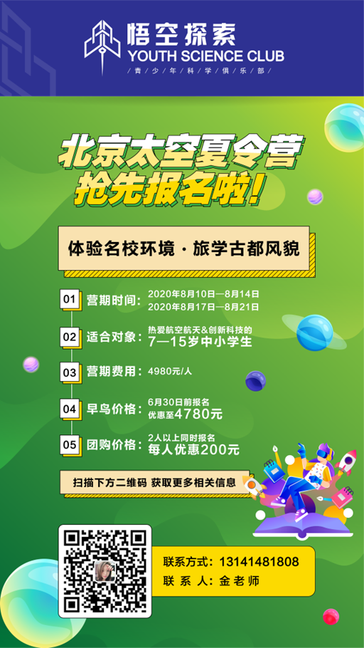 这次要说的是在北京推出的“北京太空夏令营”活动!